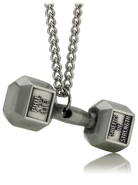 Men's Antique Finish Dumbbell Necklace-Phil 4:13