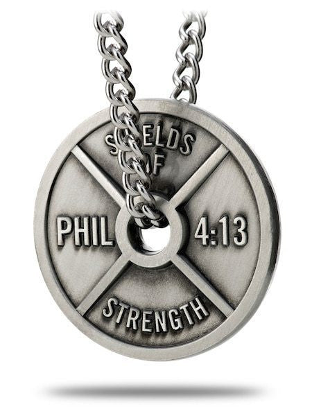 Men's Antique Finish Weight Plate Necklace - Phil 4:13