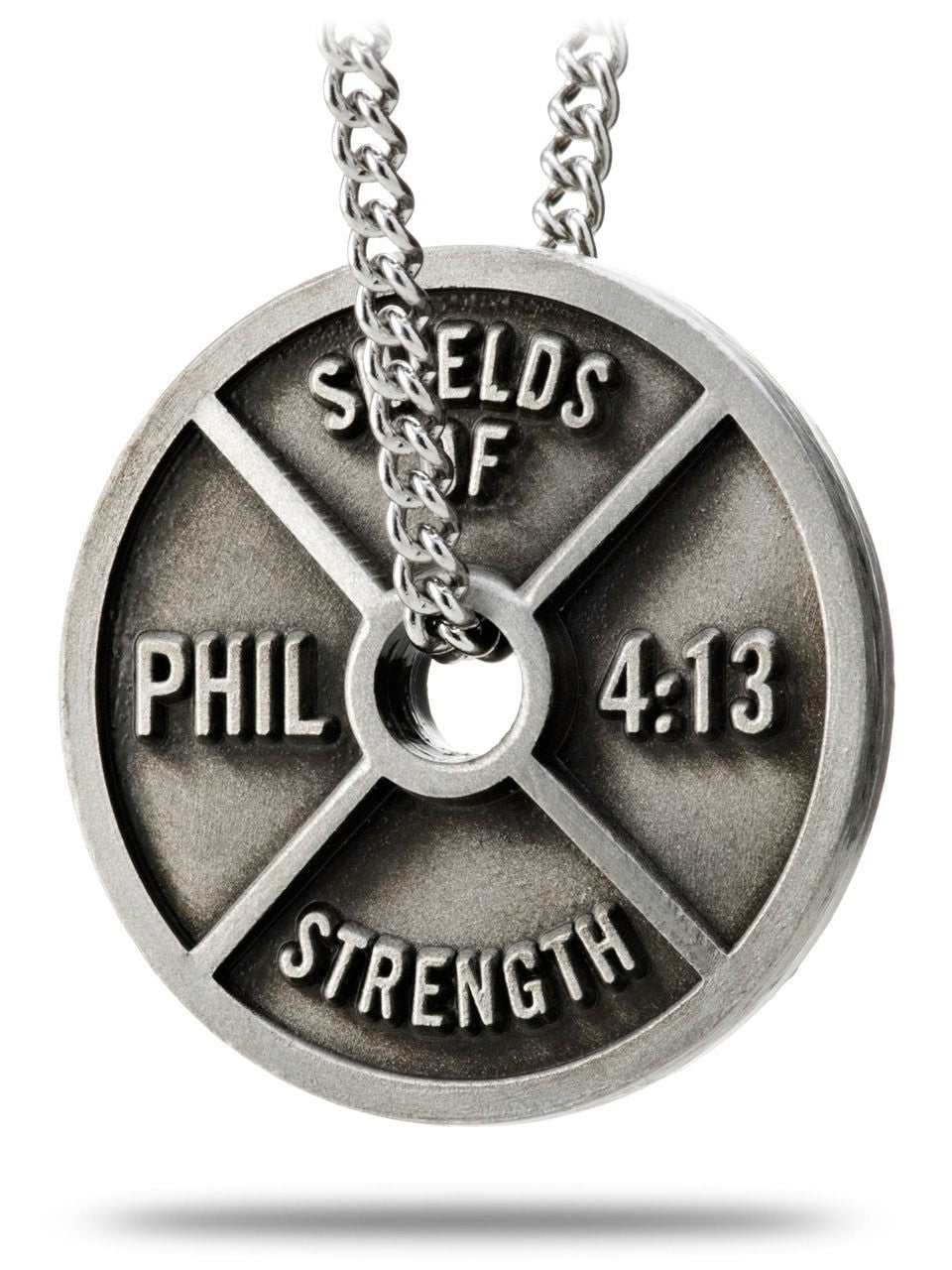 Women's Antique Finish High Relief Weight Plate Necklace-Phil 4:13