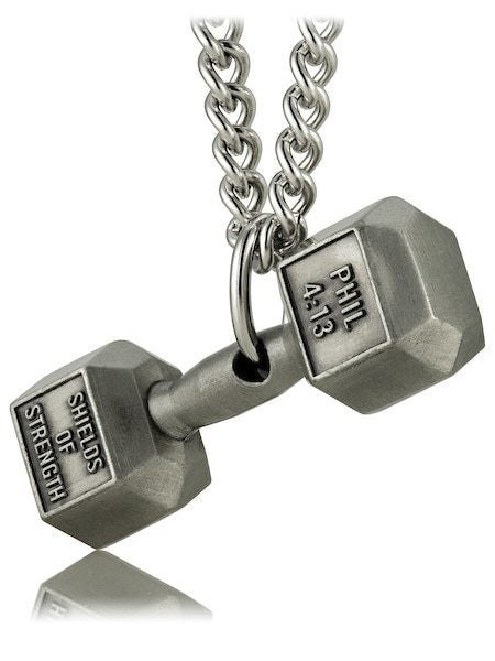 Men's Antique Finish Dumbbell Necklace-Phil 4:13